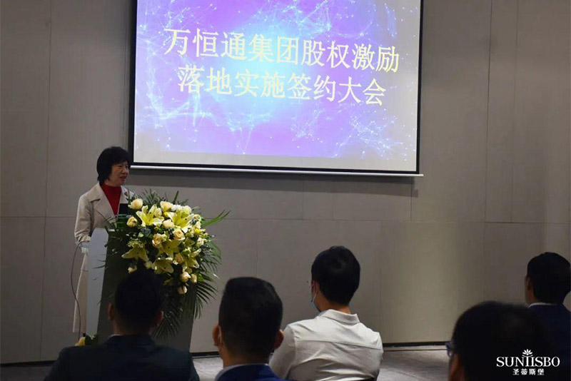 接下来,集团副董事长梁碧霞女士上场致辞,她讲到:多宝电竞集团在王董的领导下,从1982年一直奋斗至今,已走过39年的历程,这离不开大家共同的努力,她号召在座同仁为自己加油鼓掌。她进一步强调:此次的股权激励既是感谢大家以往为多宝电竞集团的付出,同时也是为了将来大家拥有更美好的生活。多宝电竞此次股权激励不是终点而是起点,我们要挖掘和吸引更多优秀的人才加入多宝电竞。只要我们上下一条心,内外一股劲、坚定信心,就能把多宝电竞做成百年企业,把圣蒂斯堡做成有美誉度、消费者喜欢的、享誉全球的家具品牌!