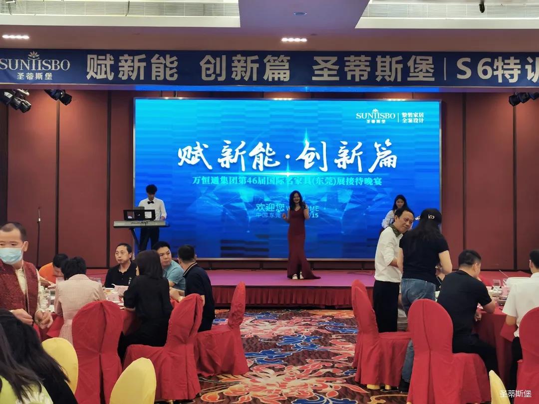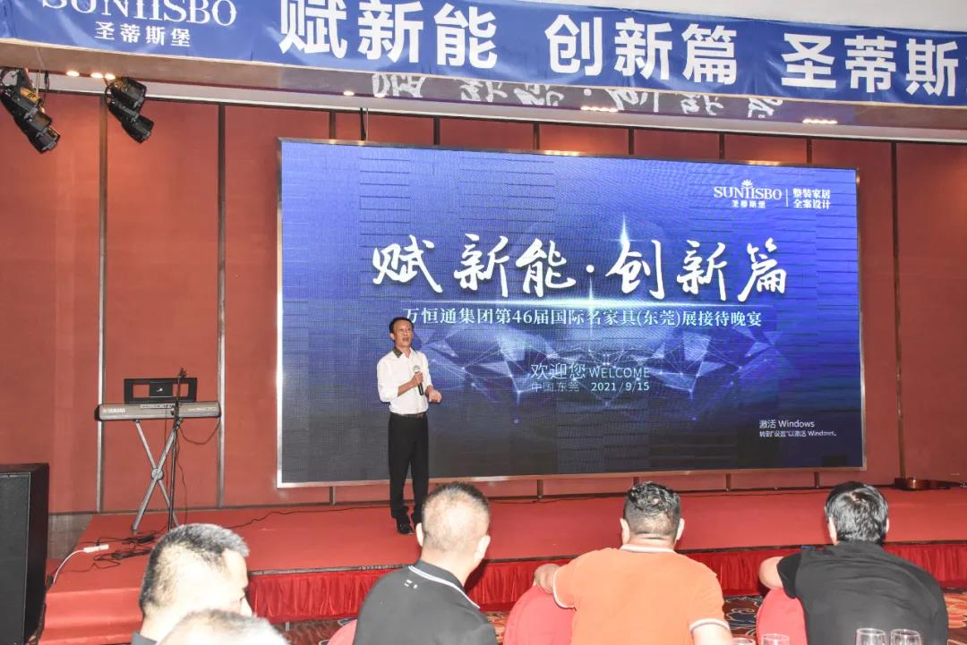 9月15日晚6时许,以“创新能,赋新篇”为主题的多宝电竞集团第46届国际家具展接待晚宴在虎门丰泰花园酒店举行。